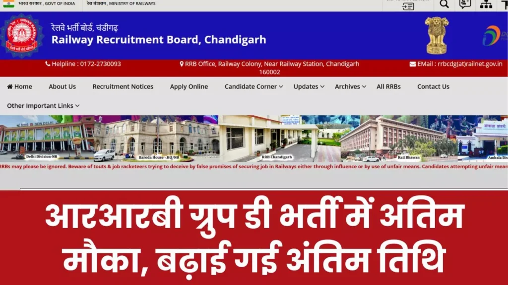 RRB Group D 2026: वर्ष की बड़ी भर्तियों में शुमार आरआरबी की तरफ से निकली ग्रुप डी के 2,20,195 पदों पर भर्ती की अंतिम तिथि 2 मार्च तय की गई थी, जिसे बढ़ाकर अब 9 मार्च 2024 कर दिया गया है। जो भी उम्मीदवार किसी कारणवश फॉर्म भरने से छूट गए थे, वे तुरंत आधिकारिक वेबसाइट पर जाकर अपनी आवेदन प्रक्रिया पूरी कर सकते हैं।